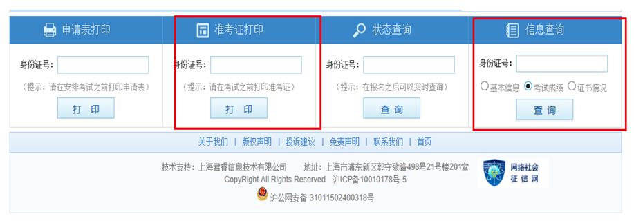 3、在“信息查询”,输入自己的身份证号码,点击“查询”,即可查询自己的考试成绩